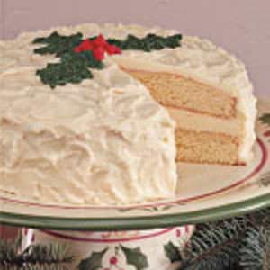 - Remove 1/4 cup frosting for decorating if desired; tint 3 tablespoons green and 1 tablespoon red. Spread plain frosting between layers and over top and sides of cake. Use green and red frosting to pipe leaves and berries on cake. Store in the refrigerator. Yield: 12 servings.