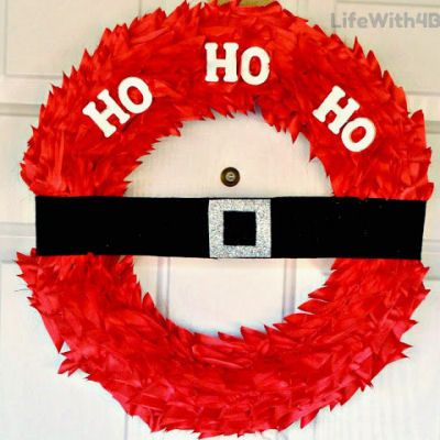 I saw this Door Wreath Tutorial on Pinterest, but it’s actually an even easier craft if you pick up a sparkly red wreath from Target. I bought mine for $8.