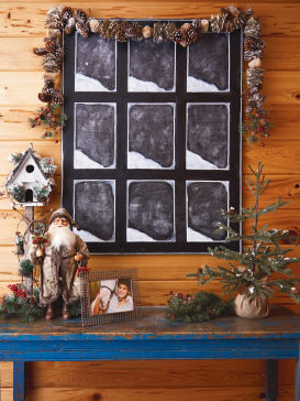 Brought to you from the crafters at Michaels, this pretty snowy Christmas window would look great above your fireplace mantle. And if you have some chalkboard paint left over from creating your chalkboard wall, it’s a really inexpensive Christmas craft to put together.