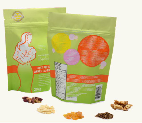 The healing mix itself looks like a brown, finely ground flax seed or powder, but each scoop is packed with some seriously amazing nutrition. Plus there are no added colours, preservatives, or additives, so it’s completely safe for new moms, breastfeeding moms, and anyone who has a restricted diet.