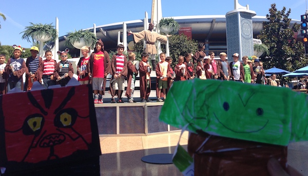 Because I was video taping the entire thing for the boys, my husband would take the puppets and pop them randomly in and out of the video. Out of no where Darth Maul decided to take offense to our puppets, and the resulting experience was magical for the entire crowd. People were laughing hysterically.