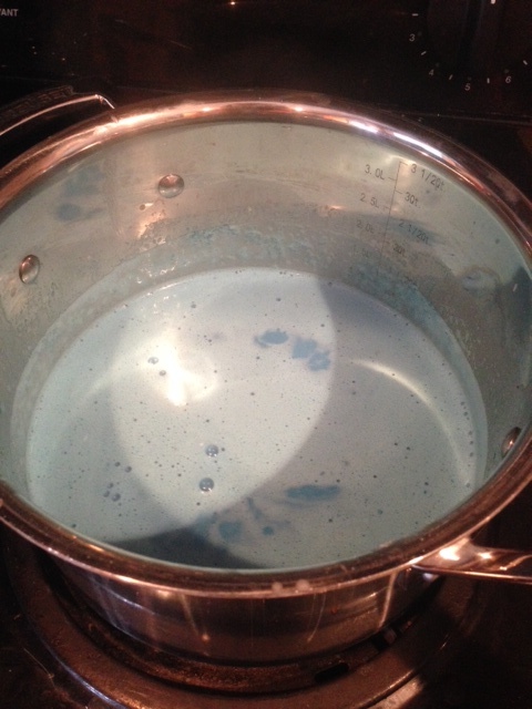 After spending $15 on a small bucket of the stuff, I decided there must be a less expensive way for the kids to get their smurf fix. Digging out my trusty ice cream maker from the depths of my crawl space, I hit the web for a recipe that would work. I found this one below on seriouseats.com.