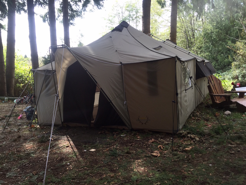 This is a Cabela Ultimate Alaknak Tent. It’s the biggest model they have, 12 x 20, and I drove over to Vancouver Island to pick it up one hot night at the end of June. I got the idea from Pinterest when you searched for ‘Glamping.’ Our plan was to live in it for a few weeks while we fixed the house (I’m still laughing so hard about this) and then flip it when we didn’t need it anymore.