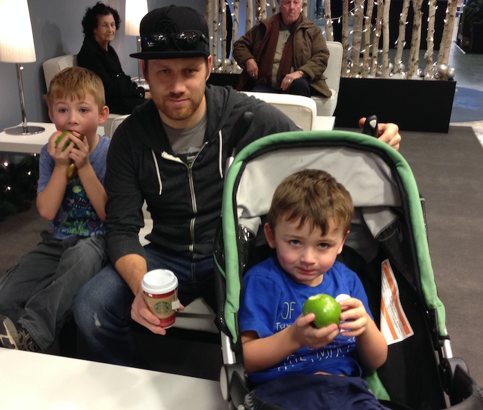 Once in the mall, I counted heads (1,2,4, where’s 3?) and headed off to do some holiday shopping before our visit to the lounge. I had a list and a plan, but of course when you have these guys in tow, things tend to go off course a bit.