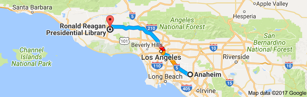 If you’ve just drove down the West Coast to California, you’re probably staying in the Anaheim area. And if you’re in the Anaheim area, you’ve got quite the drive to get to the Ronald Reagan Presidential Library. It’s in the Simi Valley at 40 Presidential Dr, Simi Valley, CA 93065 ,and the trip will take you approximately one hour and 15 minutes in good traffic and a lot longer in bad.