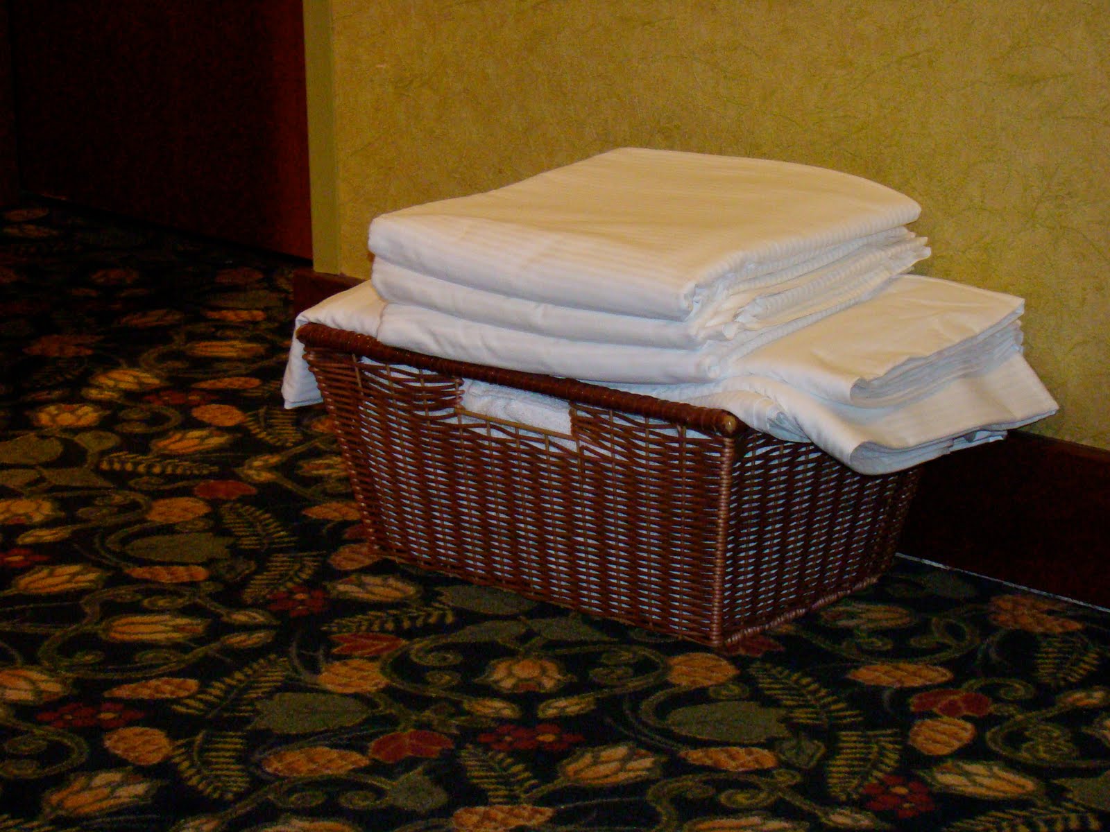 The blankets on the bunk beds were a bit worn. I expected more plush bedding. As I said before, the rooms were on the small side, but the closet was huge. I turned that into a small theater for the kids one night when I was trying to get the baby to sleep.